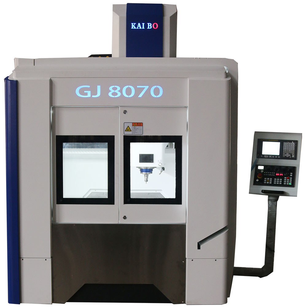 GJ代表凱博數(shù)控高速精密數(shù)控雕銑機(jī)系列,GJ-8070是以DC-8070A為原型,加大了導(dǎo)軌、絲桿、行程和主軸功率,機(jī)床采用高精密滾針直線導(dǎo)軌,剛性更強(qiáng),配備發(fā)那科系統(tǒng),是一款集大刀、小刀加工為一體的生產(chǎn)利器。